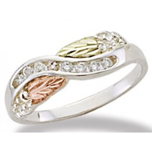 8 - 2pt Genuine Diamonds with 12K Black Hills Gold Leaves on a Solid Sterling Silver Band. (Full sizes 6 through 9 ship in 1-3 business days, other sizes will take longer)