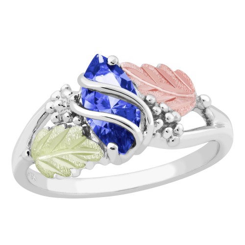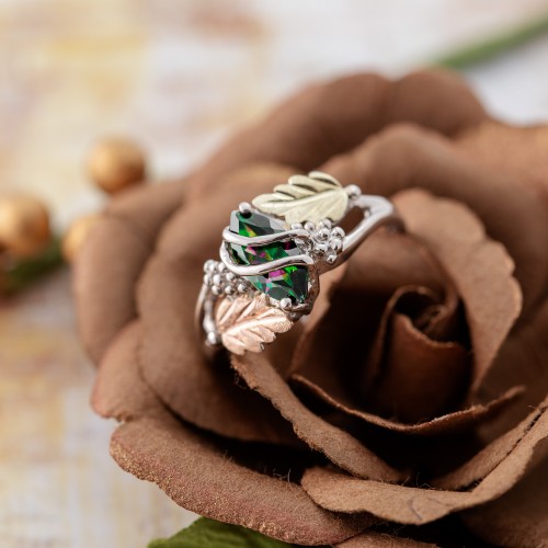 10x5MM Stones with 12K Black Hills Gold Leaves with Sterling Silver Grapes, Vines and Shank. Ring measures apprx. 1/2" across. Choose your Size and Stone.