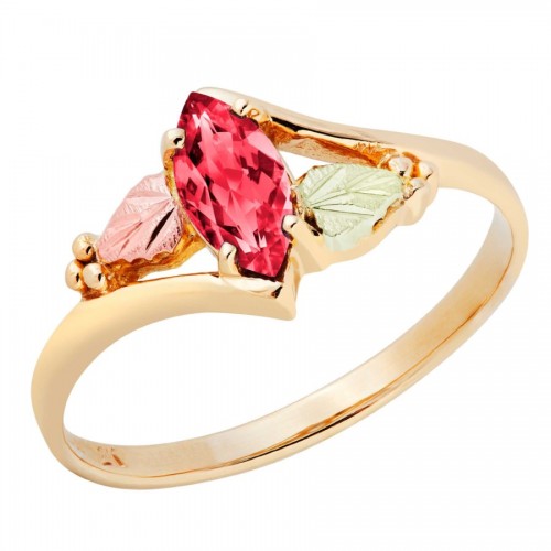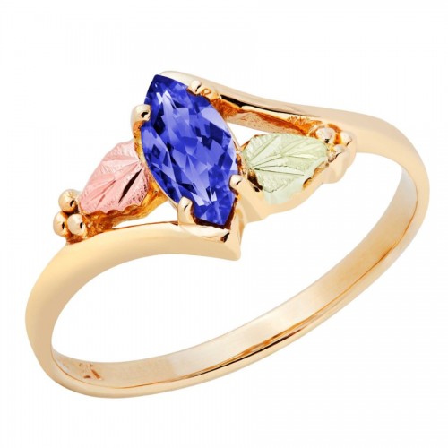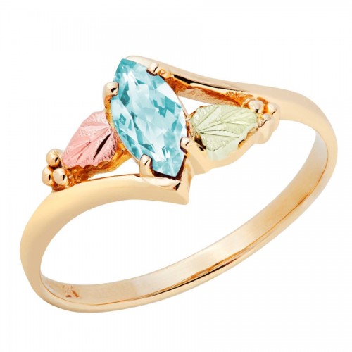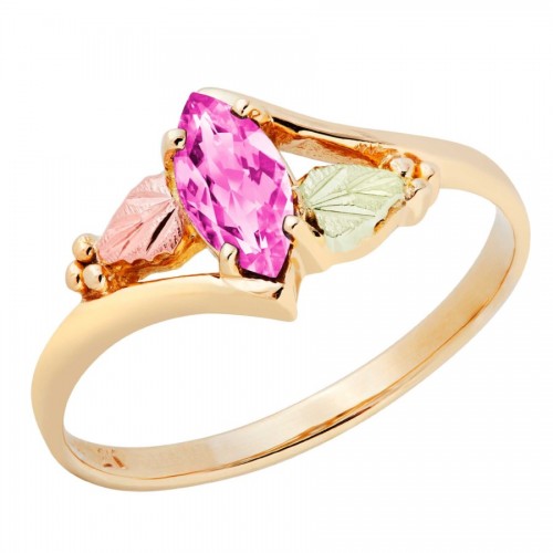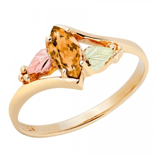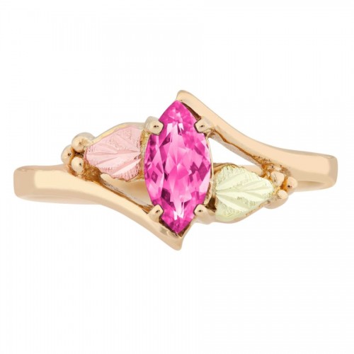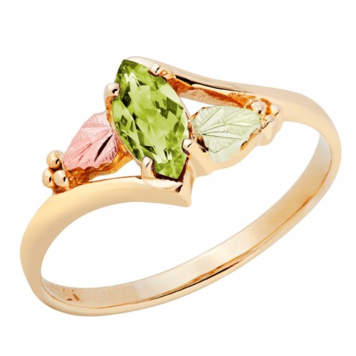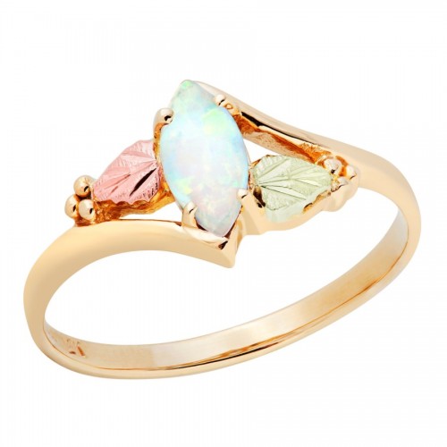 Genuine 8x4MM Mother of Pearl/Onyx Inlay Shown, with 12K Black Hills Gold Leaves on a Solid 10K Gold Band. Ring measures apprx. 3/8" across.
